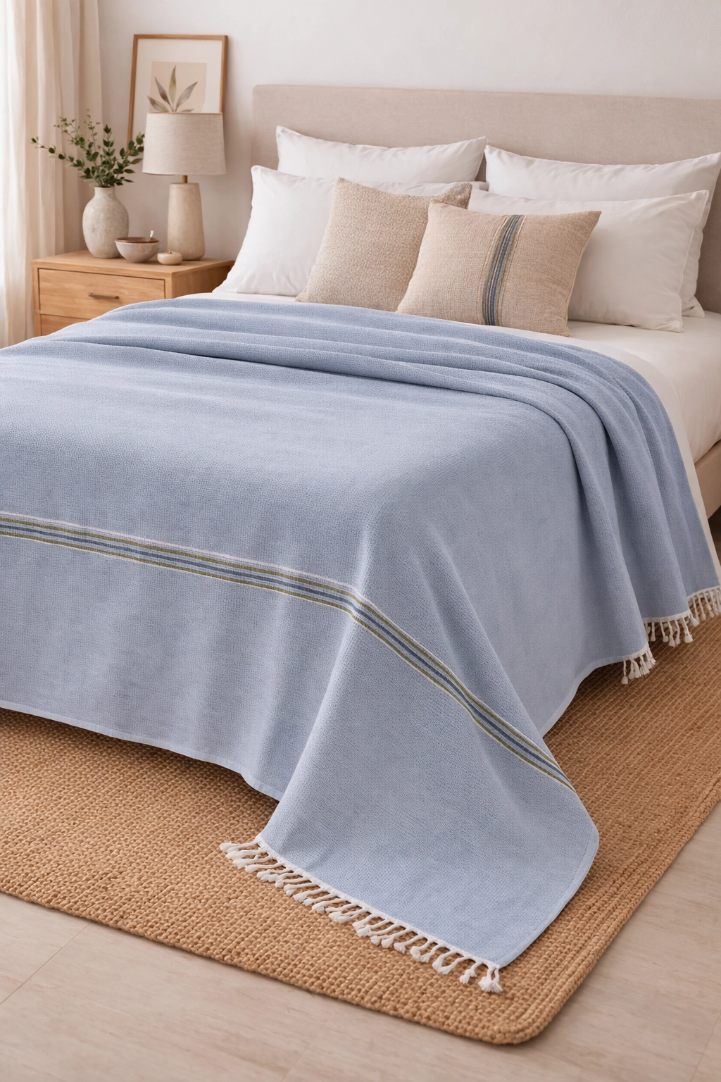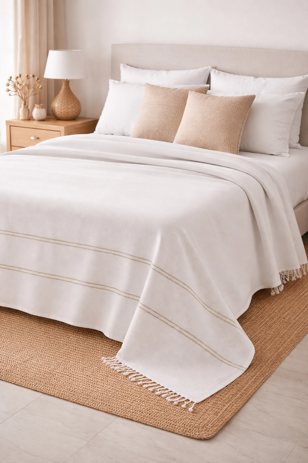 Its distinctive woven construction offers a light, comfortable, and practical covering solution suitable for daily use as well as hotel, boutique, retail, and export-oriented collections.