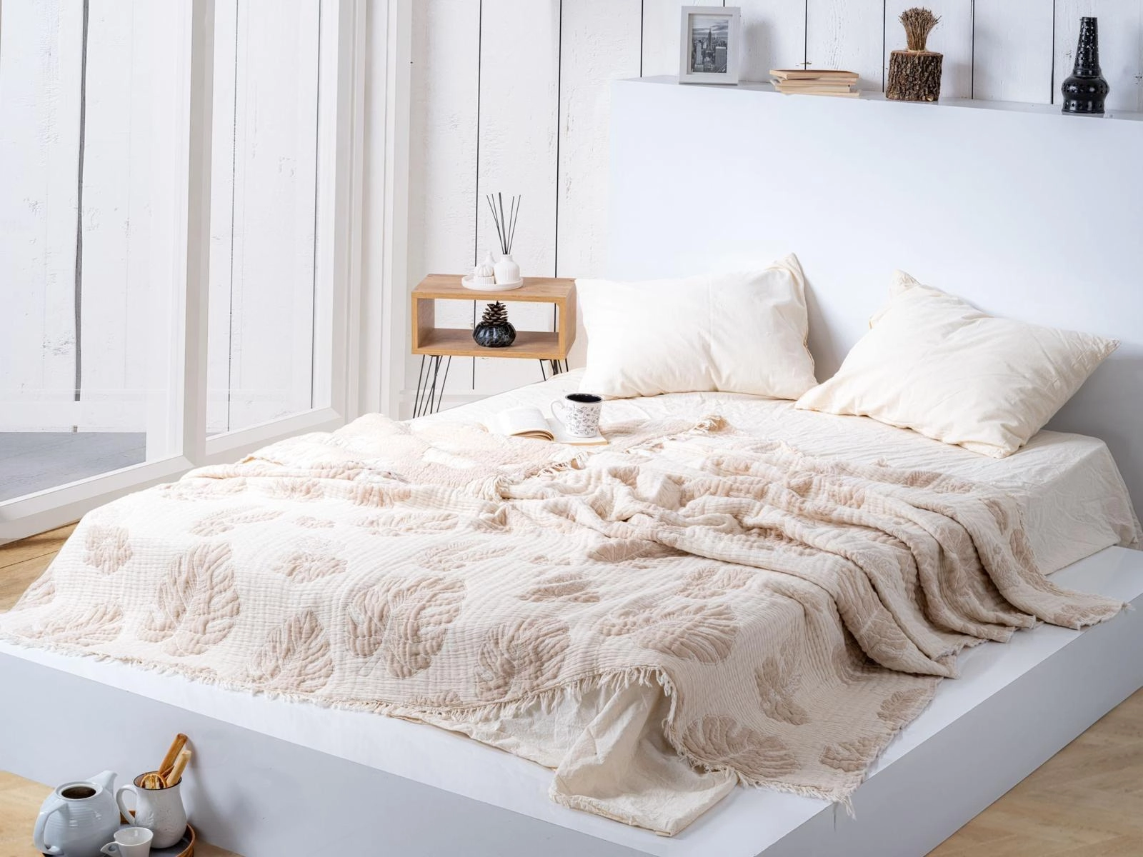 Made from natural cotton fibers, this 100% woven pique bedspread stands out with its soft hand feel, breathable structure, and refined decorative appearance.